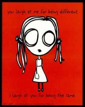 ["You laugh at me for being different, I laugh at you for being the same..."] +