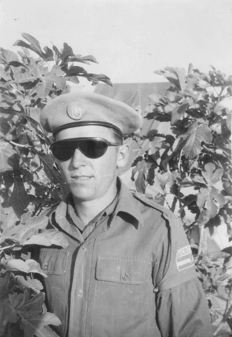 [Ovaj "opasan tip sa kacigom" u džipu je moj tata kao pripadnik snaga UN u Egiptu] +
