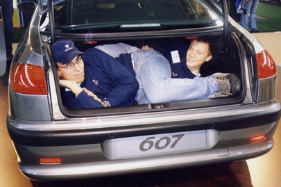 [ja i moja prva cura u tatinom poslovnom autu. baš sam je pokupio sa sata baleta] +